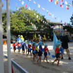 すっきりと晴れ渡った青空の下で、「第69回あかし幼稚園うんどうかい」が行われました。